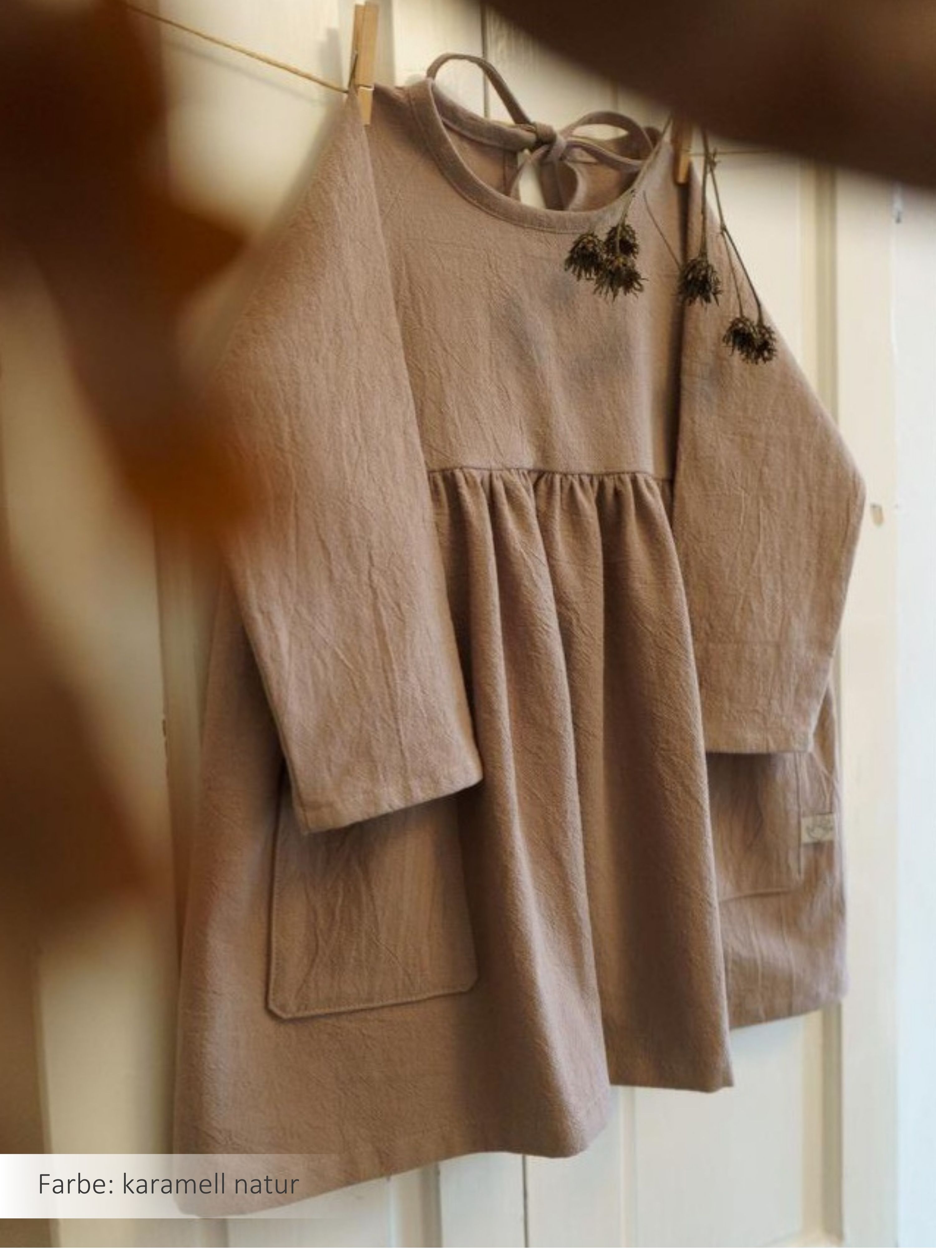 Dieses bezaubernde Mädchenkleid – benannt nach seiner Namensgeberin Maari kommt mit einer wunderschönen fließenden Silhouette daher. Dezente Details, wie ein einfacher Rundhalsausschnitt, süße Raglanärmel und ein niedliches Schleifenband im Nacken machen MAARI zu einem klassischen und zeitlosen Lieblingsstück, welches sich perfekt für den Alltag, aber auch für besondere Anlässe eignet.