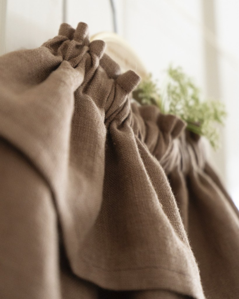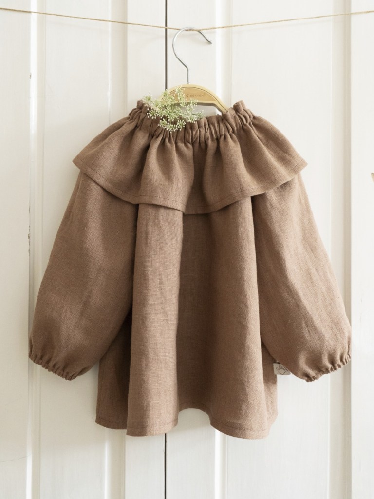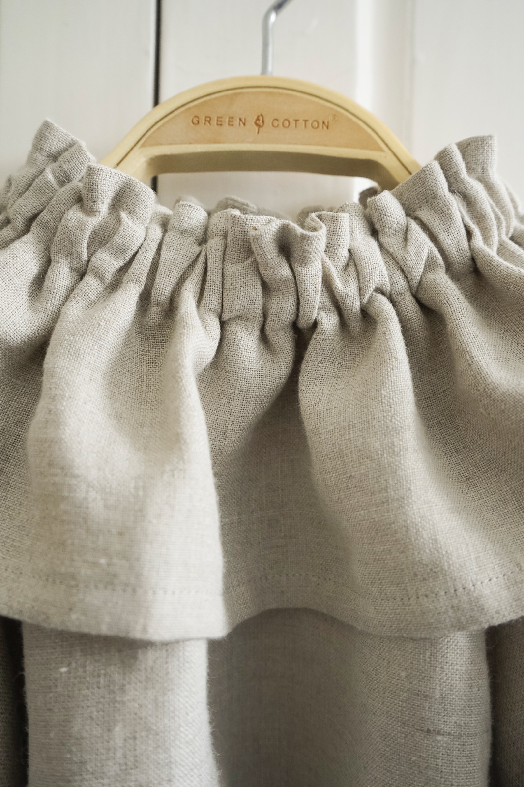 Ohne an Liebreiz einzubüßen, konzentriert sich die zuckersüße Tunika aus natürlich ungefärbtem Leinen auch hier auf die Schönheit des Einfachen und die Qualität der Materialien.